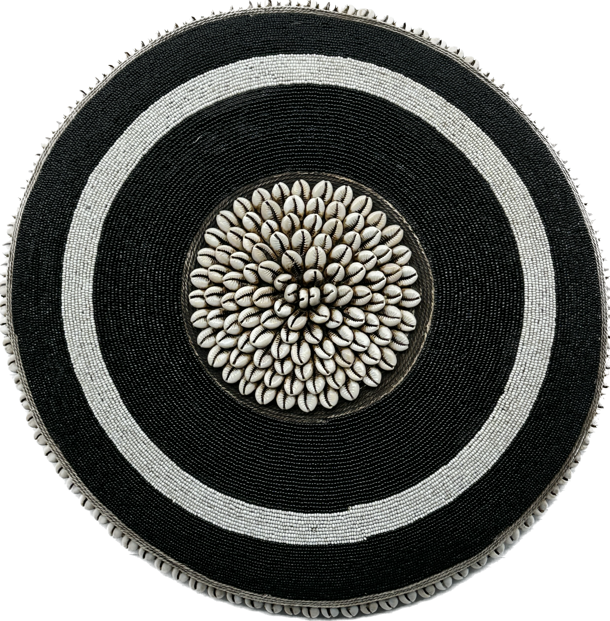 Decorative Beaded African Shield (16 in.) – Black & white SM40M18
