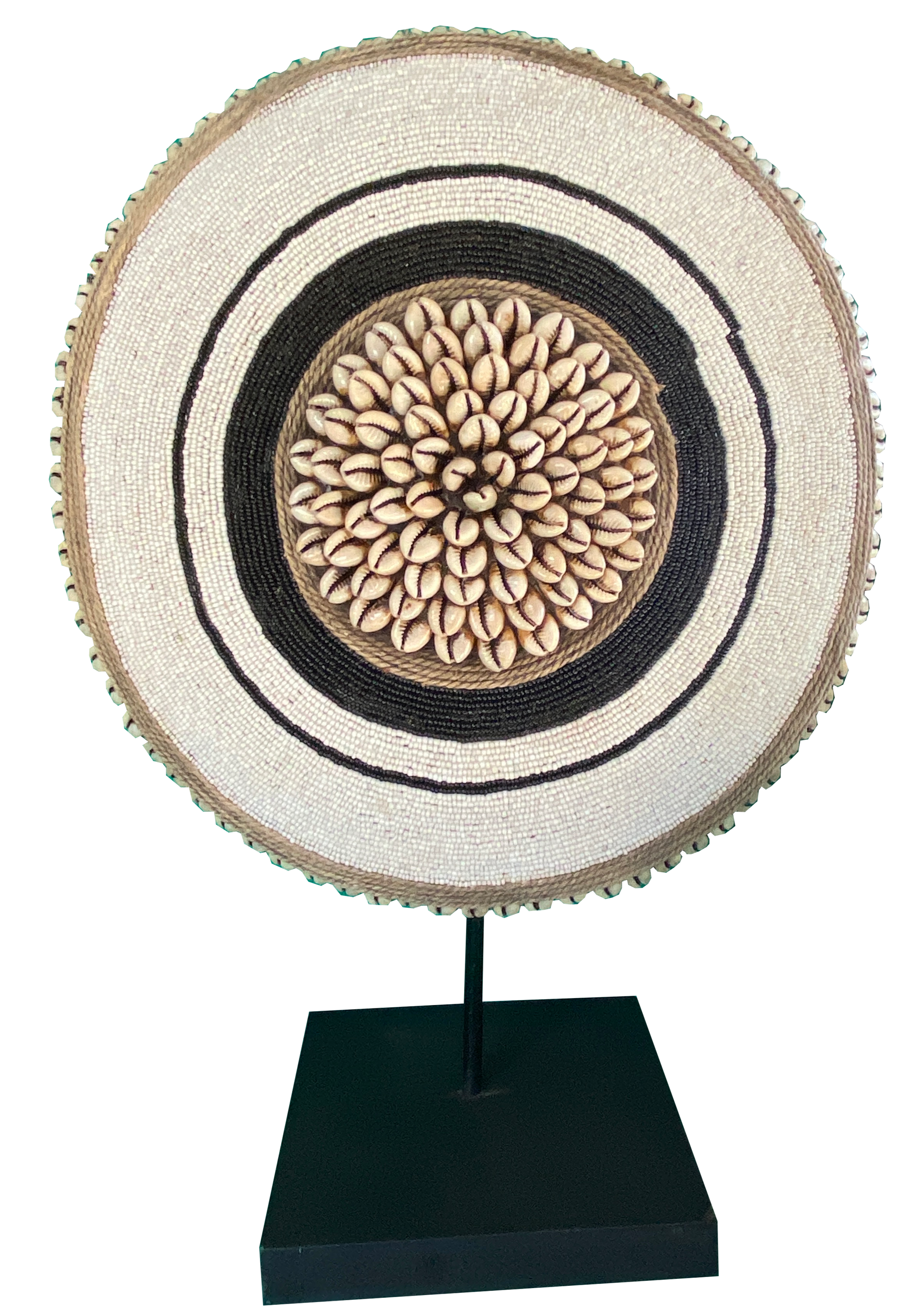 Decorative Beaded African Shield on Stand (18 in.) – White & Black SP30M6